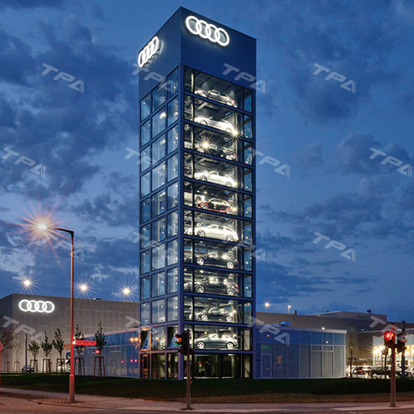 Hệ thống đỗ xe dạng tháp giúp tận dụng tối đa không gian chiều dọc, di chuyển xe lên các tầng của tháp bằng thang máy. Phù hợp với các công trình đô thị đông đúc.